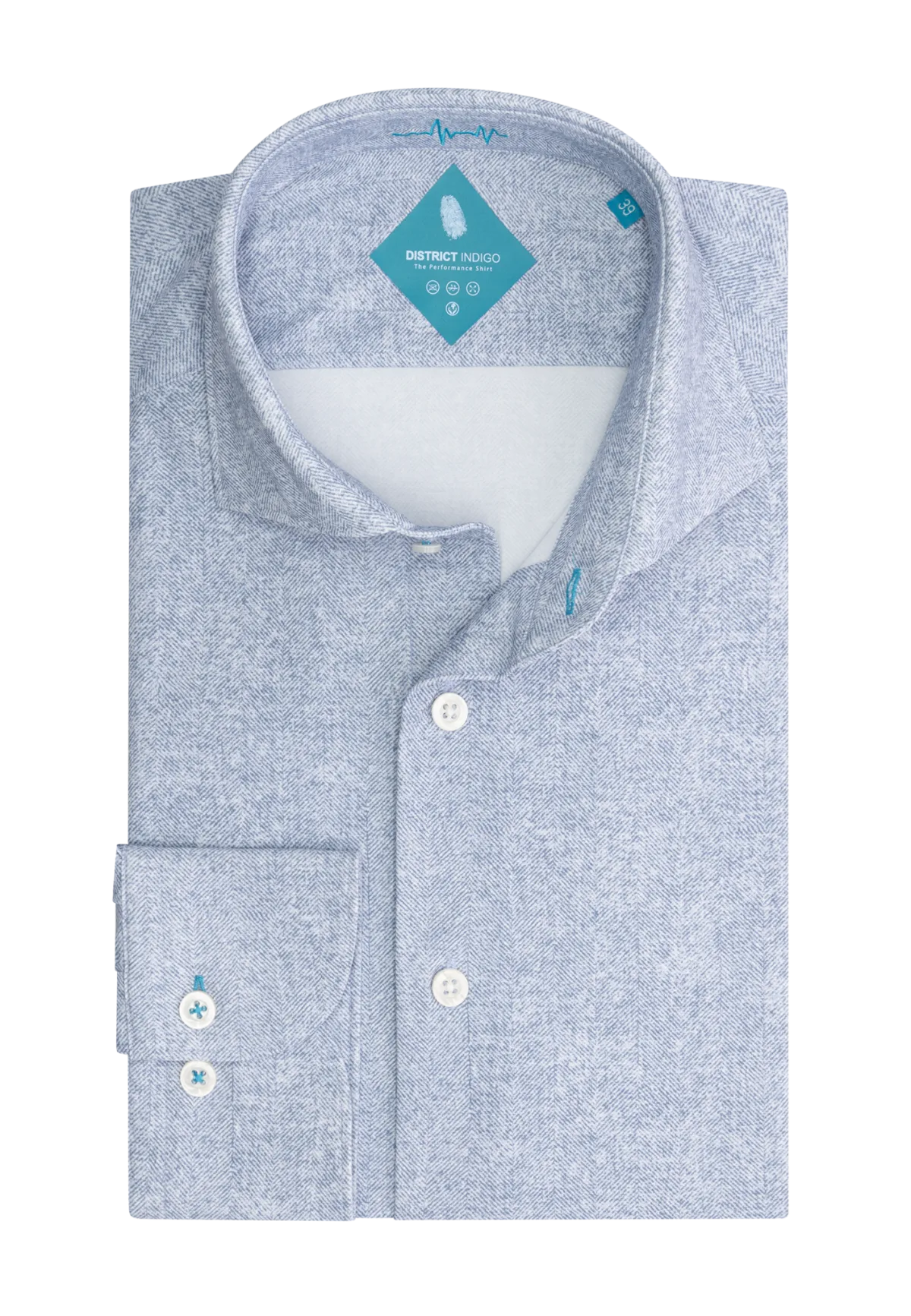 District Indigo Performance Overhemd Herringbone Light Blue 41