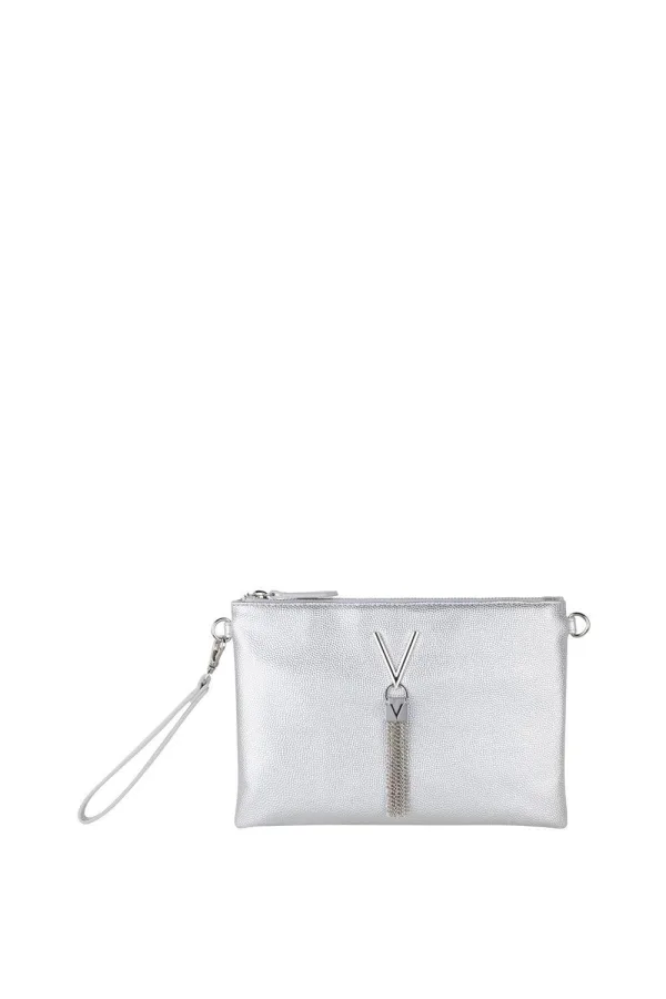 De Divina Slimline Crossbody is nieuw van VALENTINO voor AW24. Deze slanke crossbody is vervaardigd uit PU met een korrelstructuur en is voorzien van het iconische VALENTINO 'V' logo met een kwastje en zilverkleurige accessoires. De tas heeft een bovenste ritsluiting en twee interne vakken, waarvan één met rits. Geleverd met een VALENTINO stofzak.