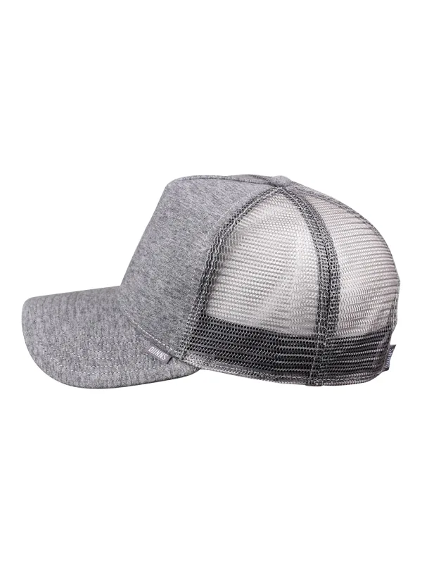 Pet detail: Gebogen scherm, Strapback; Motief: Mélange; Materiaal: Textiel; Captype: Trucker pet; Extra's: Mesh