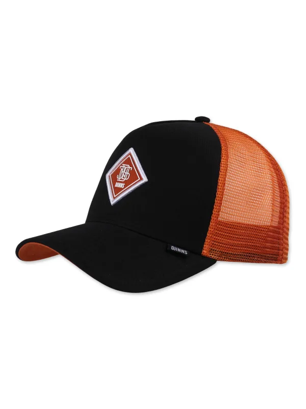 Pet detail: Gebogen scherm, Snappback; Design: Gevoerde zoom/rand; Motief: Logoprint; Materiaal: Textiel; Captype: Trucker pet; Extra's: Label patch/label flag, Wijdte verstelbaar