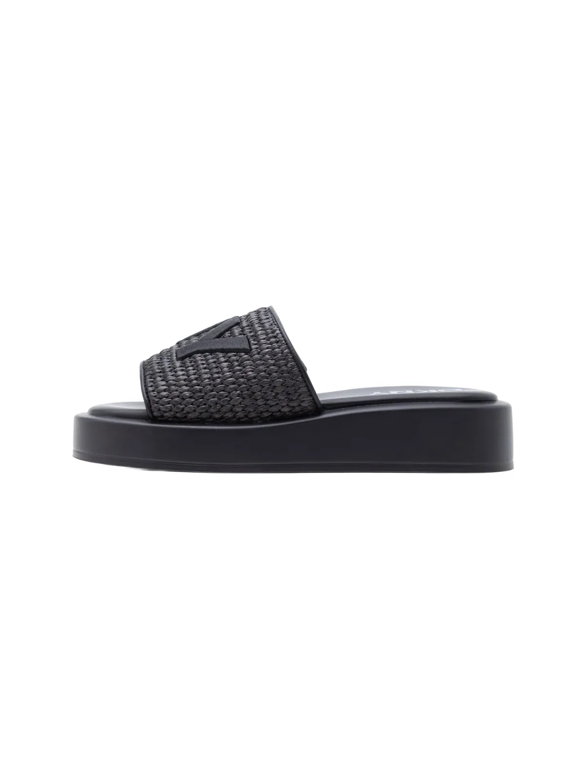 Design: Anatomisch gevormd voetbed; Type sluiting: Slip; Motief: Logoprint; Plateau: Met plateau; Materiaal: Textiel; Schoenneus: Open toe; Extra's: Gevlochten structuur, Label borduurwerk, Anti-slip zool; Hakhoogte: Platte hak (0-3 cm)