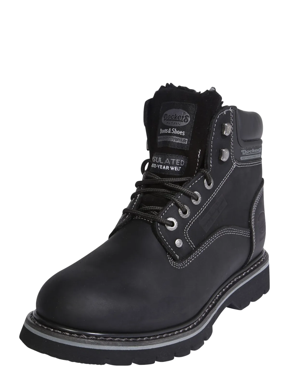 - Bij aboutyou.nl kun je Dockers by Gerli Veterboots 23DA104 grijs zwart wit kopen voor slechts €92,95 , dat is 11% goedkoper dan bij Bol (€104,24).