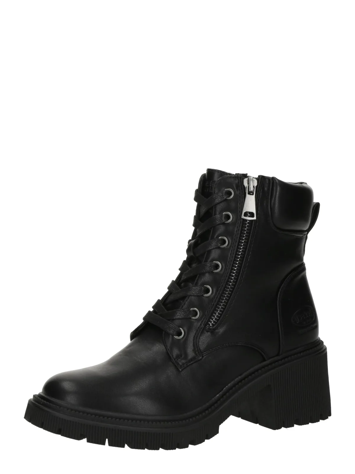 Design: Ritszakken aan de zijkant, Vetering met 7 gaten, Profielzolen; Type sluiting: Ritssluiting; Type hak: Blokhak; Materiaal: Imitatieleder; Motief: Effen; Plateau: Met plateau; Materiaal: Imitatieleer; Schoenneus: Ronde neus; Extra's: Op staal naden, Label preegdruk, Metalen oogjes; Hakhoogte: Middelhoge hak (3-7 cm)