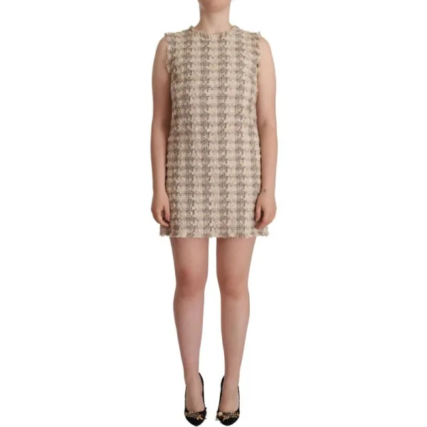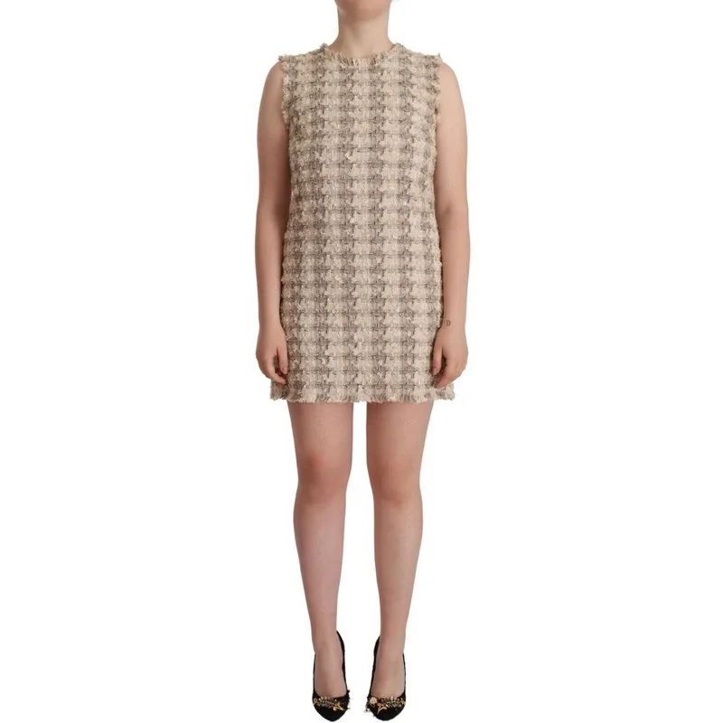 Dolce & Gabbana Beige Geruite Mouwloze Mini Shift Jurk voor Vrouwen Prijzen