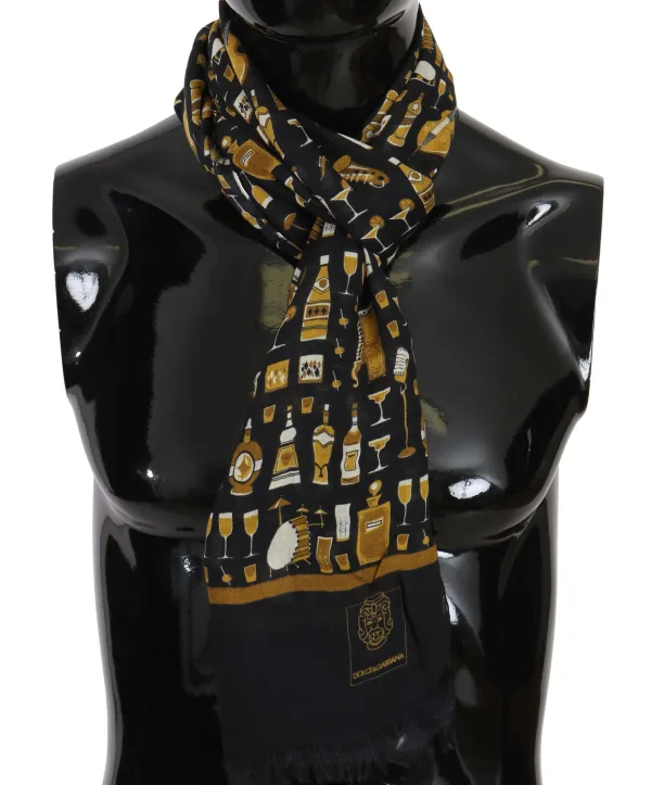 Dolce & Gabbana Blauw Modal Kasjmier Cocktail Print Heren Sjaal