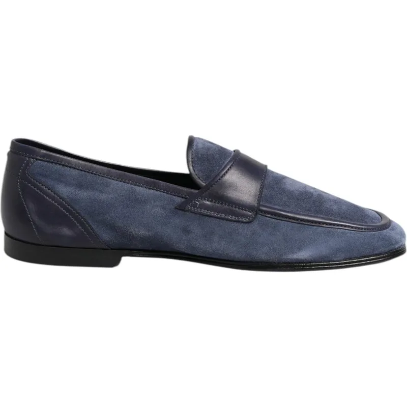 Dolce Gabbana Blauw Suede Lederen Instapschoenen Moccasins