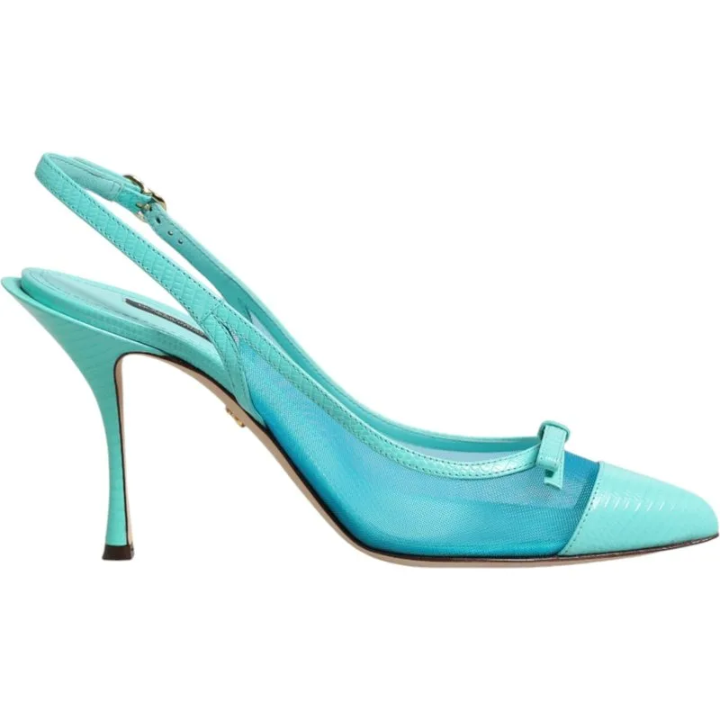 Dolce Gabbana Blauwe Leren Gaas Hak Slingback Schoenen