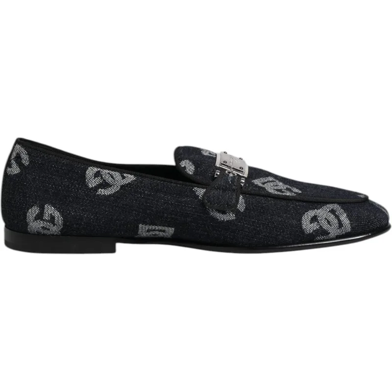 Dolce Gabbana Blauwe Logo Katoenen Instappers Formele Schoenen