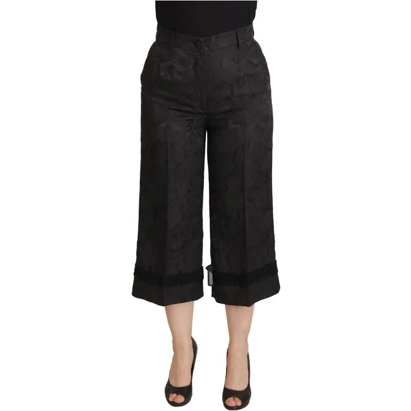 Verhoog, siert, betover met deze exquise Dolce Gabbana culottes. Met ongeëvenaarde verfijning zijn ze ontworpen om een statement te maken bij elke speciale gelegenheid. Gemaakt van luxueuze zwarte zijde brokaat, hebben deze culottes een prachtig allover bloemenpatroon, zodat je moeiteloos opvalt met gracieuze elegantie. Een charmante kantafwerking aan de zoom geeft een vleugje verfijnde elegantie, terwijl de veilige knoop- en ritsluiting zorgt voor een gekleed, flatterend figuur. Praktische zijzakken bieden handige opbergruimte zonder concessies te doen aan stijl. Perfect voor formele evenementen of glamoureuze avonden, combineren deze culottes moeiteloos functionaliteit met high fashion, zodat je zelfvertrouwen uitstraalt.