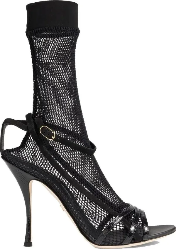 Dolce&Gabbana Boots – Fishnet Mesh Sandals With Croc-Effect Texture in zwart