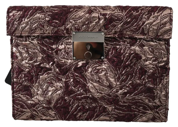 Prachtige gloednieuwe tas met labels, 100% authentiek Dolce & Gabbana. Model: Aktetas portfolio clutch document laptop tas Materiaal: Jacquard, krokodillenprint leer Kleur: Bordeaux en goud, zwart met zilverkleurige metalen details Zwarte leren binnenvoering Eén groot compartiment Binnenzak met ritsluiting Sleutelslot klepafsluiting Logo-details, metalen hardware met gegraveerd logo Gemaakt in Italië Zeer exclusief en van zeer hoge ambachtelijke kwaliteit Afmetingen: 26cm x 18cm x 5cm