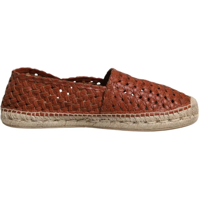 DOLCE & GABBANA Prachtige gloednieuwe met labels, 100% Authentieke Dolce & Gabbana geweven leren espadrilles. Model: Espadrille schoenen Kleur: Kastanjebruin Materiaal: 100% Kalfsleer Leren buitenzool Logo details Gemaakt in Italië Zeer exclusief en van hoge ambachtelijke kwaliteit