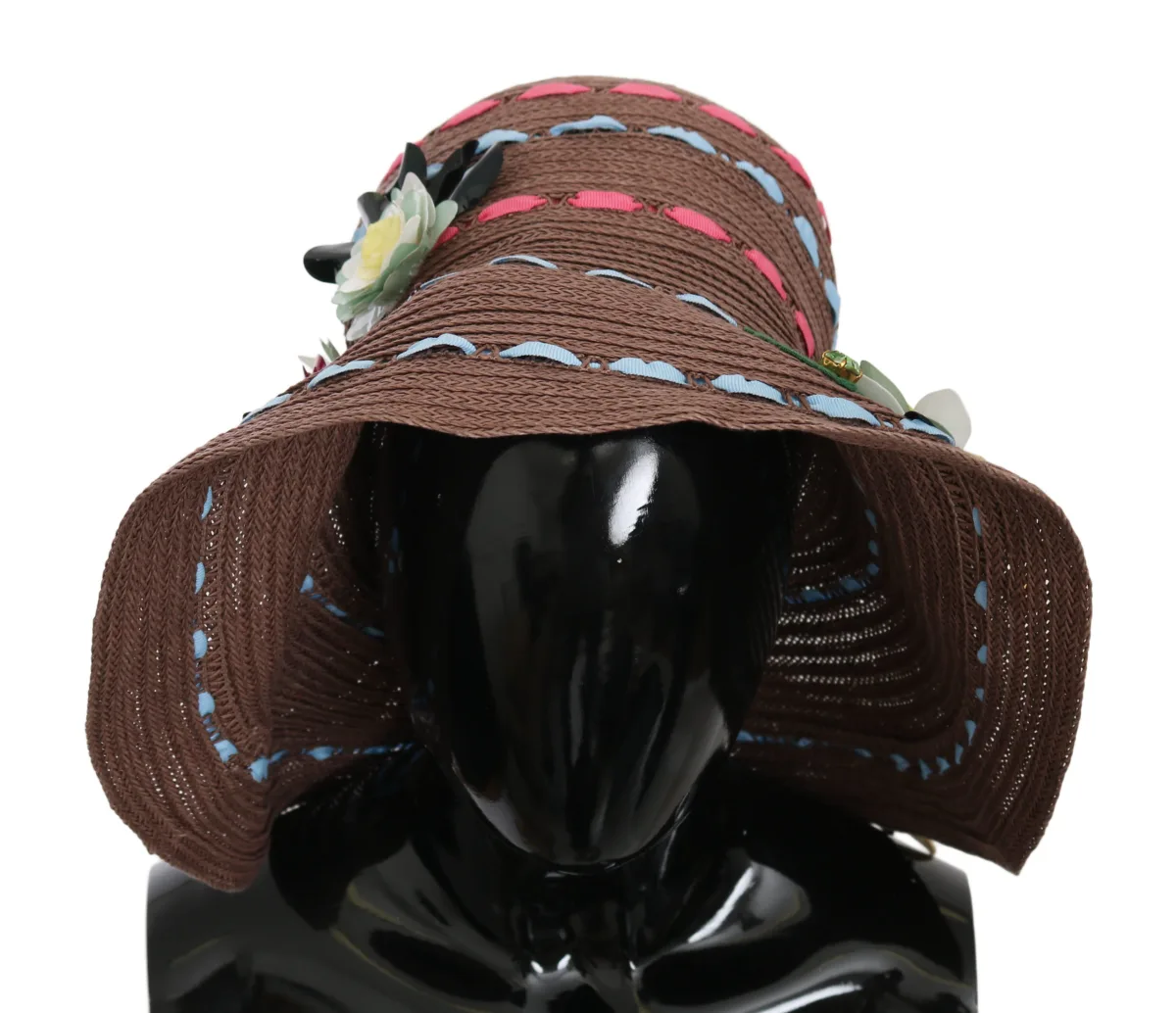 Specificaties: Dolce & Gabbana Bruin Brede Rand Bloemige Floppy Vrouwen Capello Hoed