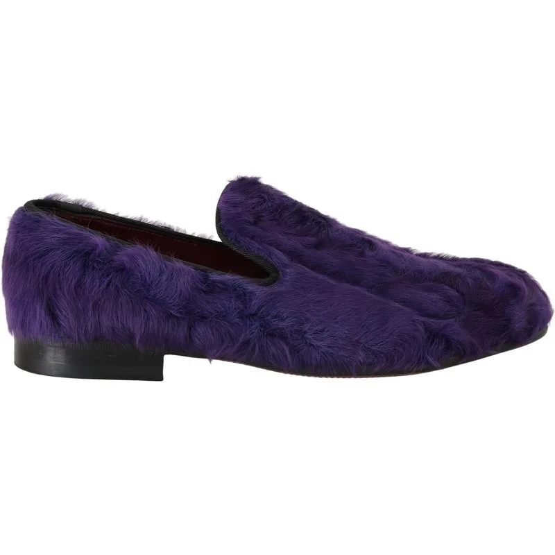 Dolce & Gabbana Dames Paarse Schapenbont Leren Instappers