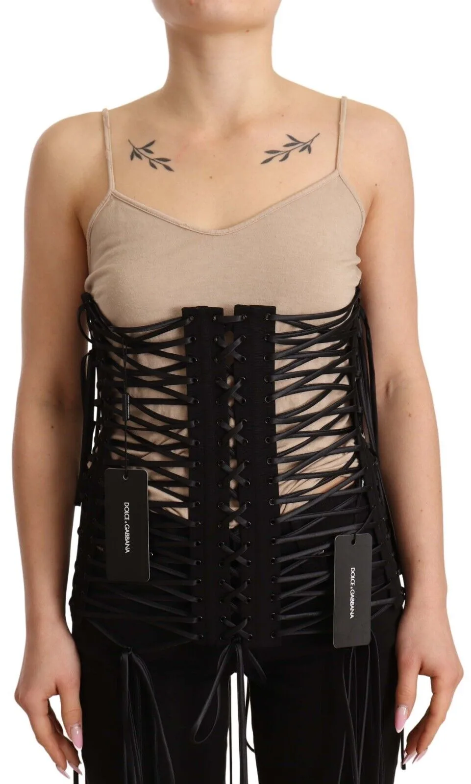 Dolce & Gabbana Dames Zwarte Verweven Korset Met Twee Ritsen Top