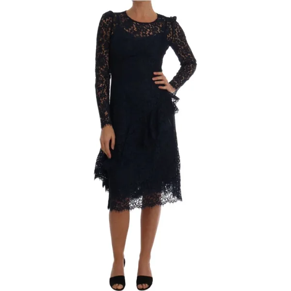 Dolce & ; Gabbana Gorgeous brand new with tags, 100% Authentic Dolce & ; Gabbana blue Taormina floral lace knee length dress Model : Long sleeve knee length A-Line Color : Blue Zipper opening on back Inside stretch silk lining Logo details Made in Italy Very exclusive and high craftsmanship Material : 39% Cotton, 5% Nylon, 56% Rayon Lining : 76% Silk, 16% Cotton, 4% Elastane, 4% Nylon