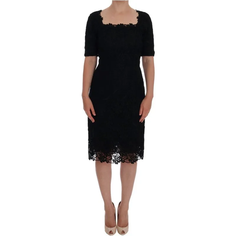 Dolce & Gabbana Dameszwarte gebloemde Ricamo Sheath Dress Prijzen