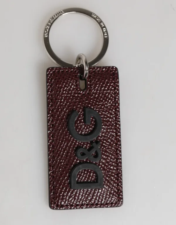 Dolce & Gabbana Donkerbruin Leren Logo Metaalring Heren Sleutelhanger Sleutelhanger