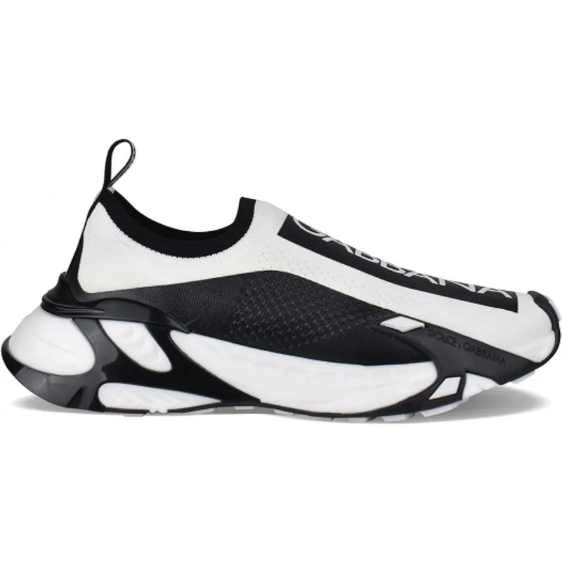 Fast Dolce&Gabbana instapsneakers.In fijne witte stretch mesh.Zwarte contrastdetails.Zwarte patch met wit logo aan de voorkant.Zwarte tong aan de achterkant met wit logo.Leren binnenzool met logolabel.Ultralichte zwart-witte rubberen buitenzool.Gemaakt in Italië.