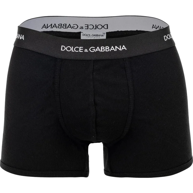 DOLCE & GABBANA Heren Fine-Rib Regular Boxershort. Geribde katoenen boxershort met elastische tailleband. Tailleband met all-over logo.