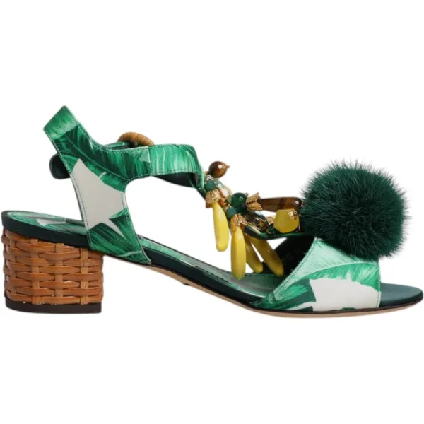 Dolce & Gabbana Groene Kristal Bont Versierde Sandalen Schoenen Prijzen