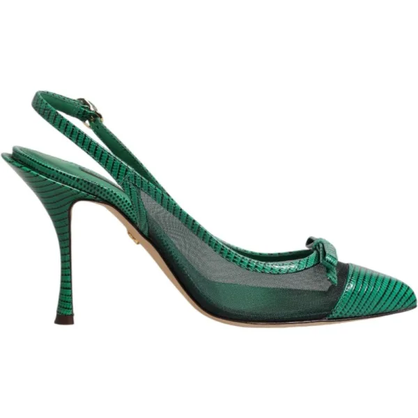 Dolce & Gabbana Groene Leren Mesh Hakken Slingback Schoenen