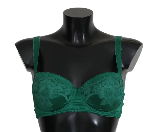 Dolce & Gabbana Groene Zijde Stretch Bloemen Kant Bh Ondergoed