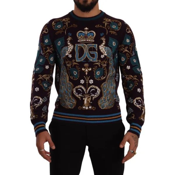 DOLCE & GABBANA Absoluut stunning, 100% Authentiek, gloednieuw met labels Trui. Model: Crewneck pullover Kleur: Bordeaux met kleurrijke borduursels Logo details Gemaakt in Italië Materiaal: 100% kasjmier Zeer exclusief en vakmanschap van hoge kwaliteit