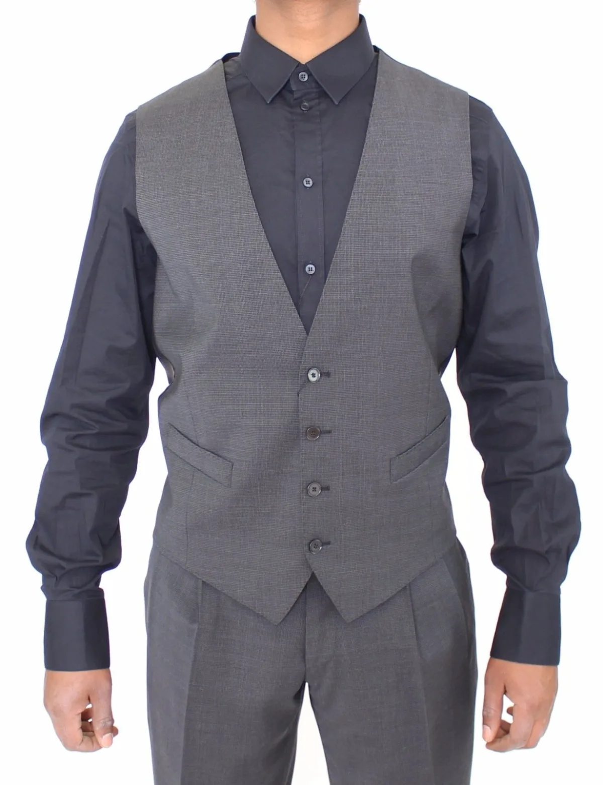 Dolce & Gabbana Heren Grijs Gestreept Wollen Jurk Vest Gilet