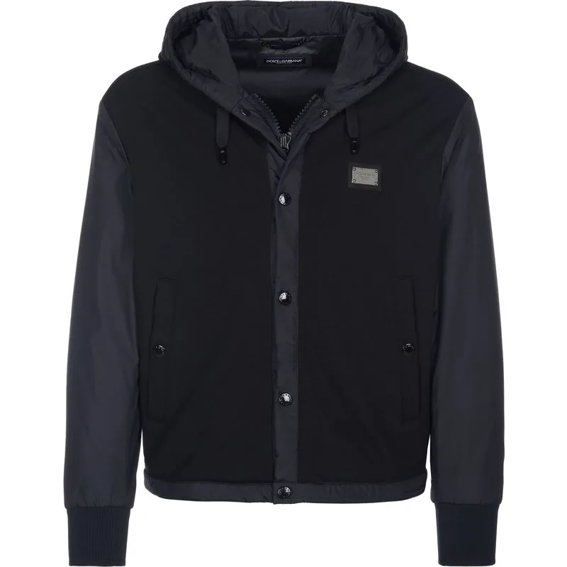 55% Viscose, 40% Polyamide, 5% Elastaan; Dolce & Gabbana jas; Model: G9ABCT FUGOV N0000; Hoogwaardig vervaardigd; Made in Italy; Capuchon met trekkoord; Verborgen tweerichtingsrits; Knopenlijst met 5 drukknoopjes; Twee zijzakken met drukknoopjes; Twee binnenzakken met rits; Verstelbare, elastische tailleband; Dolce & Gabbana logo-details
