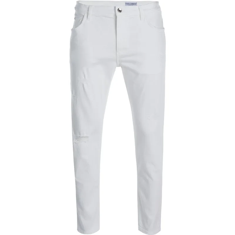 99% Katoen, 1% Elastaan; Dolce & Gabbana jeans; Model: GYJDAD G8IT4 07; Hoogwaardig vervaardigd; Zachte katoenmix; Rekbaar; Gemaakt in Italië; Klassiek '5-pocket' stijl; Enkel-loos; Sluiting: Knop, rits; Verwoeste look; Ceintuurlussen; Dolce & Gabbana logo details