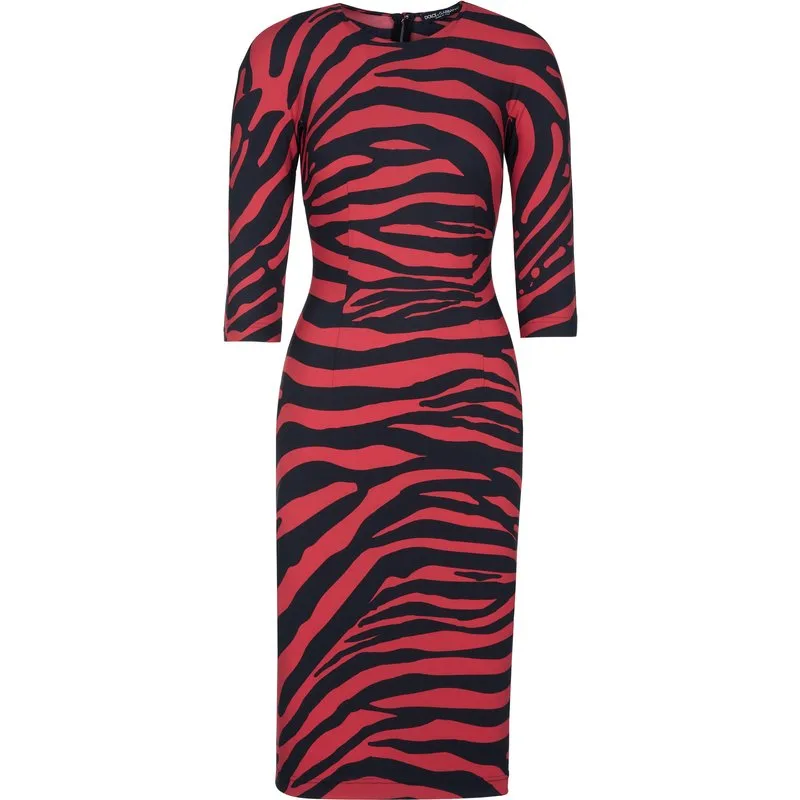 71% polyamide, 29% elastaan; Dolce & Gabbana jurk; Model: F6AXKT FSG57 HS3SJ; Gemaakt in Italië; Hoogwaardige afwerking; Hoge rekbaarheid; Slanke pasvorm; Ronde hals; 3/4 mouwen; Rits aan de achterkant; Kuitlengte; Dolce & Gabbana logo-details