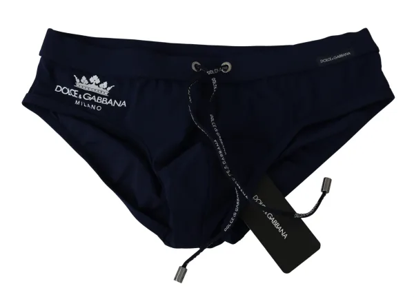Dolce & Gabbana Mannen Blauw Logo Beachwear Slip Nylon Stretch Zwemkleding