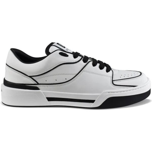 Nieuwe Roma Dolce&Gabbana low-top sneakers in wit leder. Zwarte details. Zwart-wit logo patch op de tong. Zwarte veters. Witte en zwarte rubberen zool met logo aan de achterkant. Gemaakt in Italië.