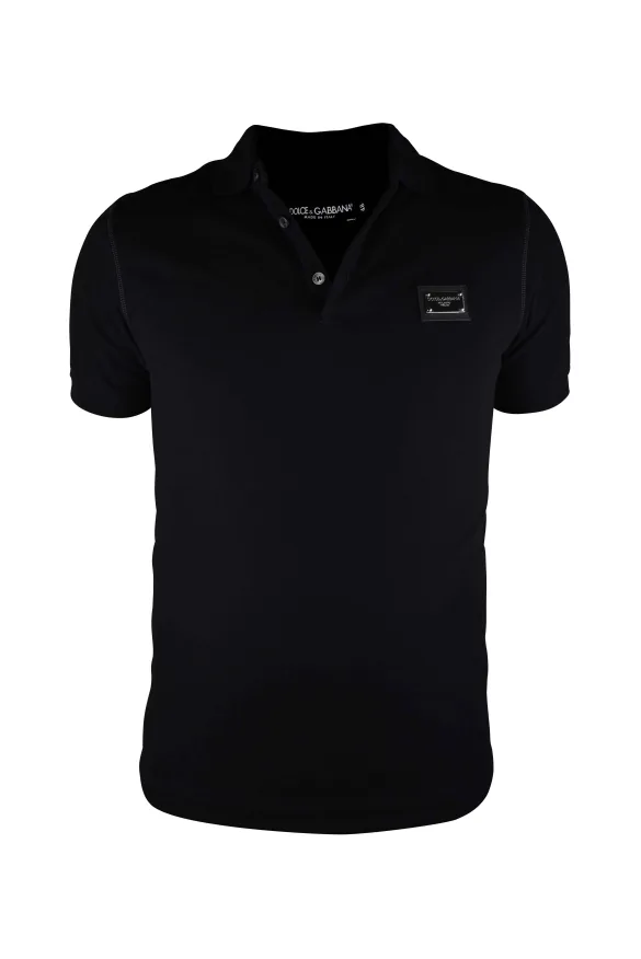 Zwart poloshirt Dolce&Gabbana.Metalen logoplaatje op de borst.Korte mouwen.Button-down kraag.100% katoen.Made in Italy.