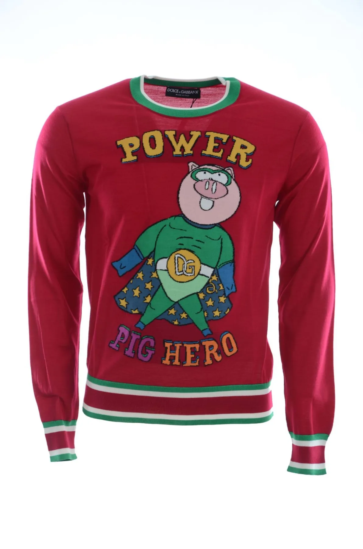 Dolce & Gabbana Rode Wol Zijden Varken van het Jaar Trui voor heren