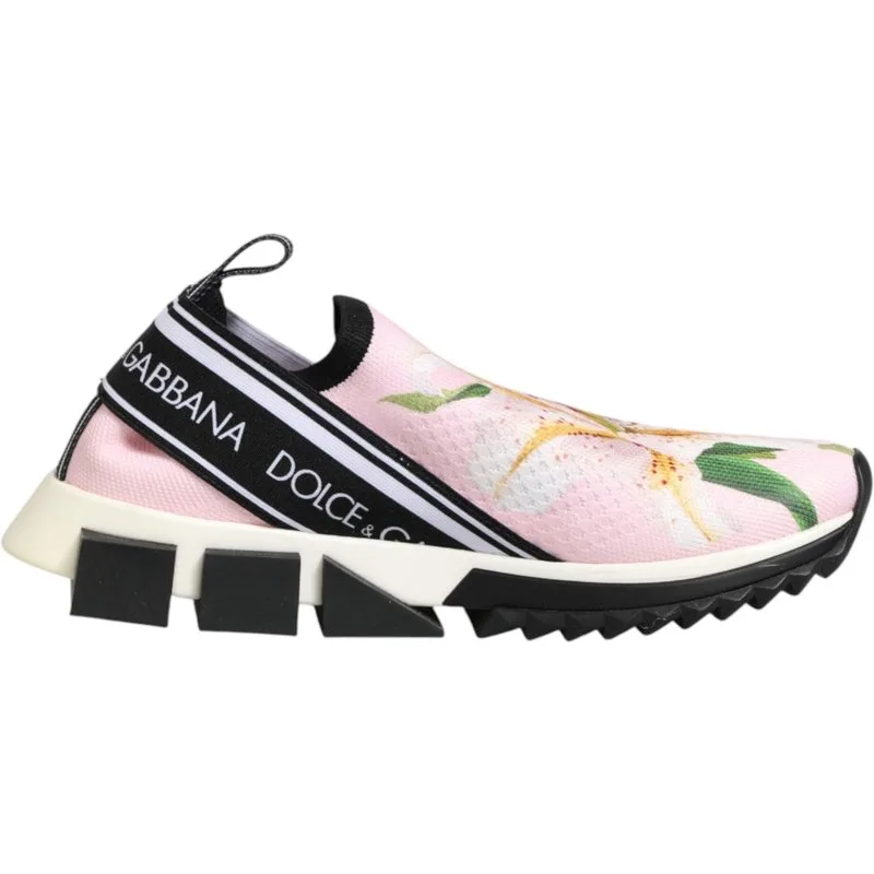 Dolce & Gabbana Roze Bloemige Sorrento Lage Sneakerschoenen