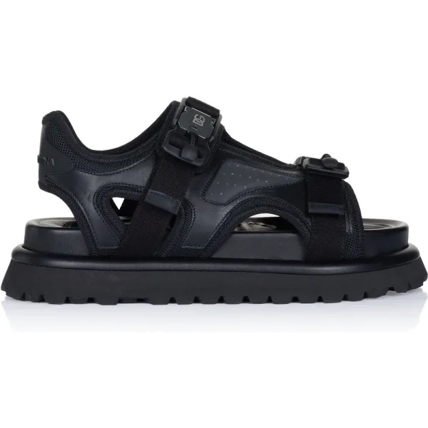 48% Polyester, 26% Viscose, 21% Elastodiene, 5% Lamsleer; Dolce & Gabbana schoen; Model: A80333 AY949 80999; Hoogwaardig vervaardigd; Gemaakt in Italië; Twee verstelbare brede banden; Ronde neus; Twee magnetische drukknopen; Antislip zool; Zoolhoogte: 6,5 cm; Dolce & Gabbana logo details