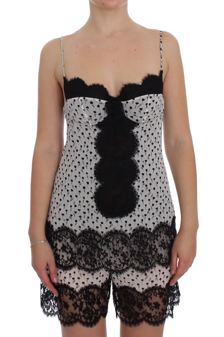 Ontdek elegantie, omarm sereniteit. Deze Dolce & Gabbana zijden chemise biedt ongeëvenaarde luxe voor je meest gekoesterde momenten. Voel de fijne zijde je huid omarmen, terwijl de romantische bloemenprint en de delicate zwarte kant een feest voor je zintuigen creëren. De ronde hals en het mouwloze ontwerp bieden een comfortabele, onbeperkte pasvorm. Geniet van de onderhoudsvriendelijke constructie die blijvende schoonheid garandeert. Perfect voor rustige avonden of luxueuze zelfzorgrituelen, deze chemise voegt moeiteloos comfort en hoogwaardige stijl toe aan je leven.