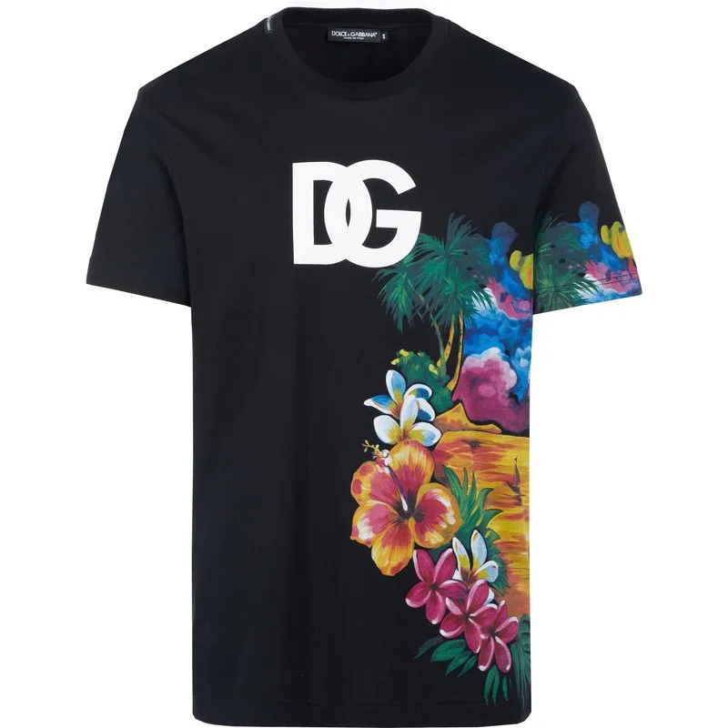 100% Katoen; Dolce & Gabbana t-shirt; Model: G8PT1T G7G9I S9000; Hoogwaardige fabricage; 100% katoen; Made in Italy; Licht oversized pasvorm; Logo print op de borst; Bloemendruk aan de zijkant; Ronde hals; Korte mouwen; Dolce & Gabbana logo details