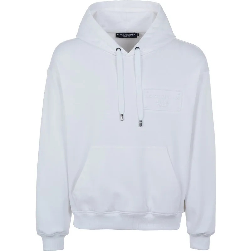 100% Katoen; Dolce & Gabbana pullover; Model: G9ZU0Z GG937 W0800; Hoogwaardige fabricage; Made in Italy; 100% zachte katoen; Kap met koord; Eén voorklepzak; Geïmpregneerd logo op de borst; Ribgebreide mouwen en zoom; Dolce & Gabbana logo details