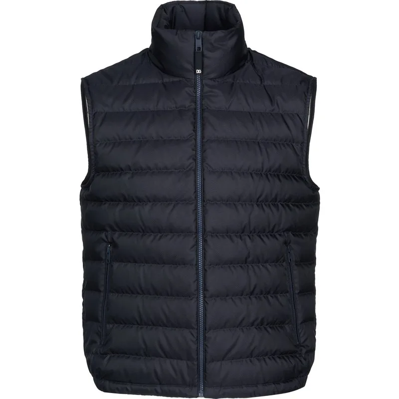 100% polyamide; Dolce & Gabbana vest; Model: G9KU0T FUMQG B0665; Hoogwaardig vervaardigd; Gemaakt in Italië; Opstaande kraag; Ritssluiting; Twee zijzakken met rits; Twee binnenzakken met rits; Elastische tailleband; Subtiel visgraat patroon; Kleurnotende binnenvoering; Gevoerd; Dolce & Gabbana logo details