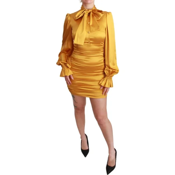 Specificaties: Dolce & Gabbana Vrouwen Gele Zijde Stretch Bodycon Mini Jurk