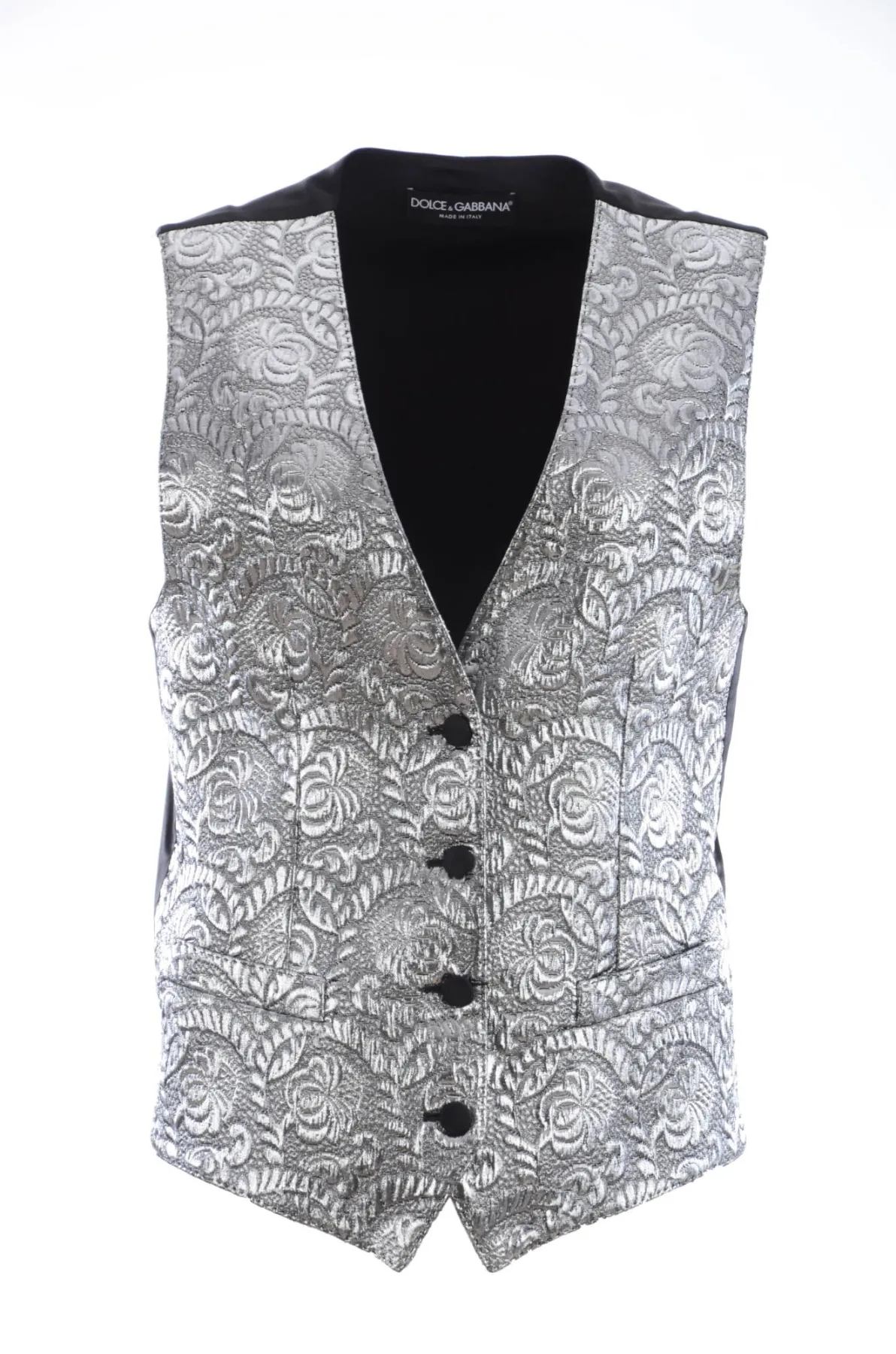 DOLCE & ; GABBANA Gorgeous brand new with tags, 100% Authentic Dolce & ; Gabbana Top. Modèle : Gilet sans manches Matériau : 45% Polyester 43% Soie 5% Coton 4% Fibre métallique 3% Elasthanne Couleur : Brocart argenté métallique Dos en soie réglable Détails du logo Made in Italy
