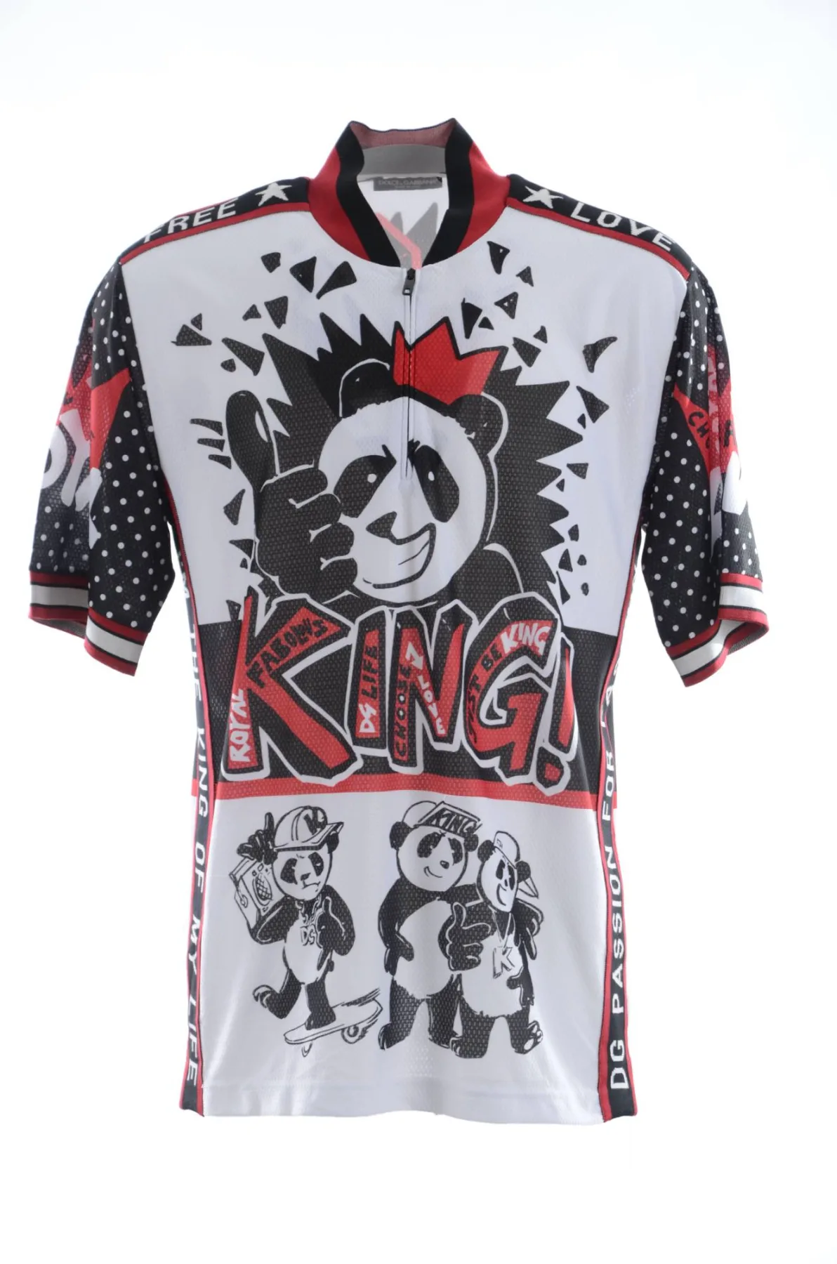 DOLCE & ; GABBANA Gorgeous brand new with tags 100% Authentic DOLCE & ; GABBANA T-Shirt. Modèle : Short Sleeve zipper collar t-shirt Couleur : White with multicolor King Panda print Material : 98% Polyester, 2% Cotton Fitting : Regular Fit Logo details Made in Italy