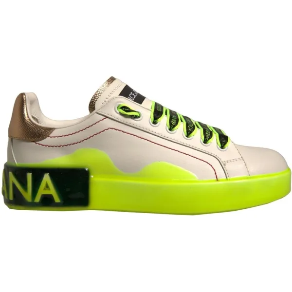 Dolce & Gabbana Witte Gele Portofino Leren Sneakerschoenen