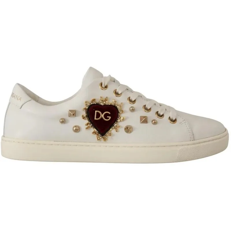 Dolce & Gabbana Witte Leren Gouden Rode Hart Sneakers Schoenen