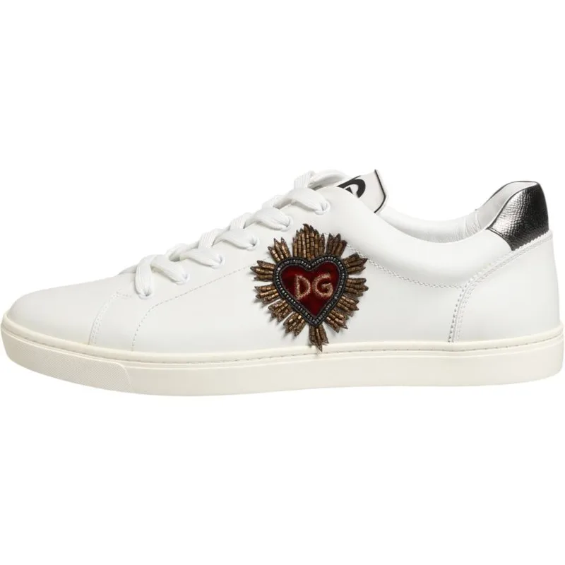 Dolce & Gabbana Witte Leren Hart Versierde Sneakerschoenen