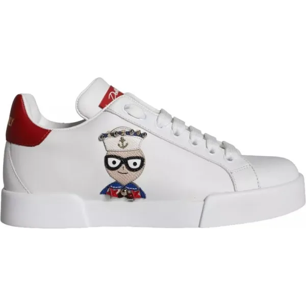 Dolce & Gabbana Witte Patch Kalfsleer Nappa Portofino Sneakers Schoenen