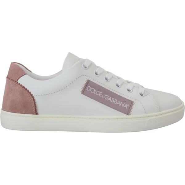 Dolce & Gabbana Witte Roze Leren Lage Sneakers Dameschoenen
